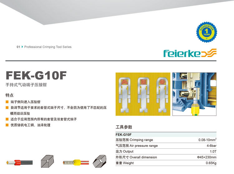 首页 > 手持气动式端子压接钳> 手持式气动端子压接钳-FEK-G10F